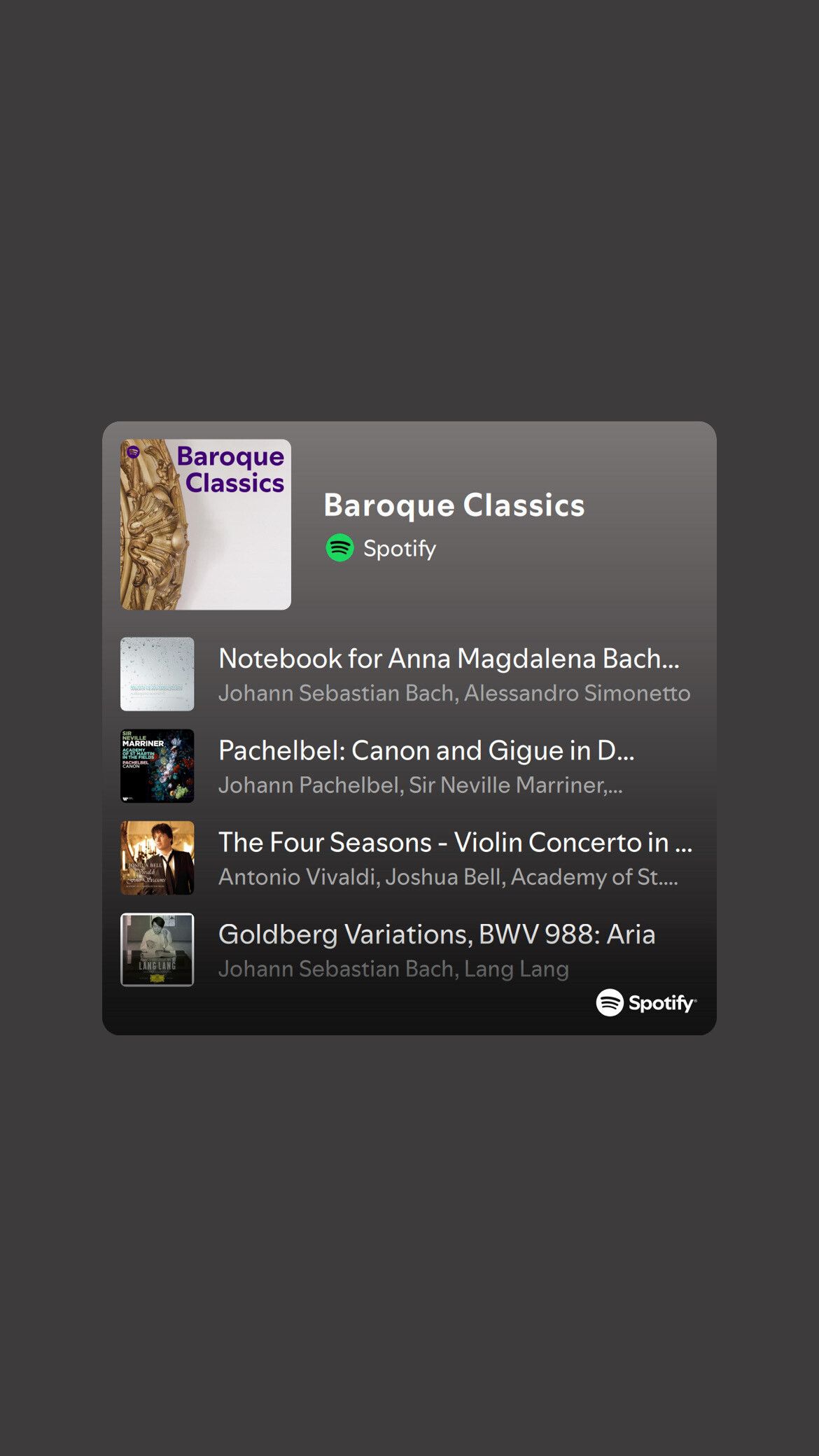 Spotify’s “Baroque Classics” playlist.